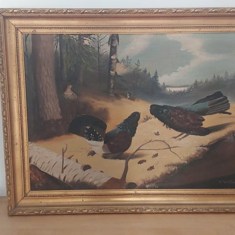 Tanskalaisen taiteilijan Finn Wennerwaldin isokoinen metsämaisema aiheinen öljymaalaus kankaalle. Teoksen koko kehyksistä mitattuna on 82 x110cm. Näyttävä maalaus