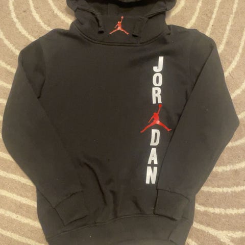 NIKE Air Jordan musta huppari. Koko 6-7 yrs 116-122cm. Koti savuton hajusteeton eikä lemmikkieläimiä. Maksu käteisenä tai mobilepay.