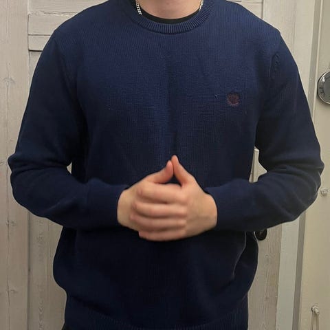Käytetty, mutta ehjä ja hyväkuntoinen neule kyynärpääpaikoilla.