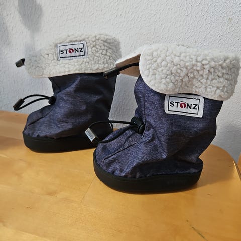 Harmaat Stonzit moitteettomassa kunnossa. Koko L. Saumoissa ei purkaumia. Väri harmaa, lumihiutale-kuvio kyljessä.