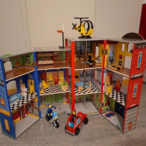 Myydään puusta tehty lelu, lasten paloasema. Puulelu soveltuu esim. nukkekoti -leikkeihin.