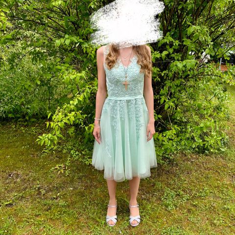 Juhlamekko on ollut käytössä n.162cm pituisella, menee oletettavasti n.160-165cm pituiselle parhaiten.