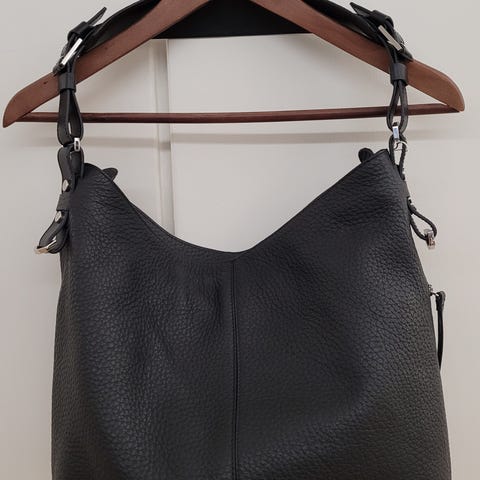 Hyvässä kunnossa ja pehmeä nahkainen laukku.