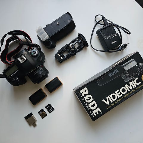Come with battery, CF card, charger, cable, etc.