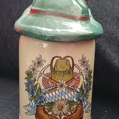 Olut esson keraaminen keramiikka posliini baari kalja kolpakko retro keräily huoltoasema bisse oluttuoppi