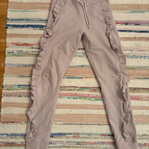 Vaalean lila gugguun onesuit spagettiolkaimilla. Koko 134, lyhyt jalkaisella menee pidempäänkin. Sivussa taskut, ohutta joustavaa trikoota. Käytettynä ostettu ja meillä tämä ei valikoitunut tytön päälle. Kirkkaassa led valossa näkyy reippaasti haitua pinnassa, mutta muuten sanoisin siisti käytetty kunto.