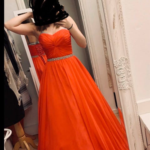 Myydään uutena ostettu ja kerran käytetty olkaimeton vanhojentanssimekko. Koko 34, mutta säädettävissä korsettiyläosan ansiosta. Ollut käytössä 158cm pituisella tanssijalla, jolla jalassa pienet korot. Helman alaosassa pientä käytön jälkeä, mutta muuten hyvässä kunnossa.