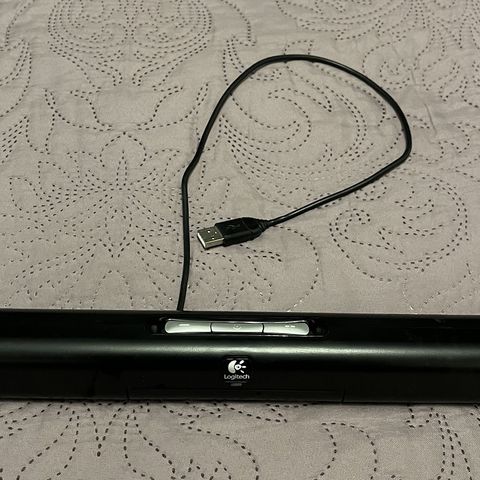 Logitechin kaiutin. Kiinnittyy USB A liittimellä. Malli on S-00041.