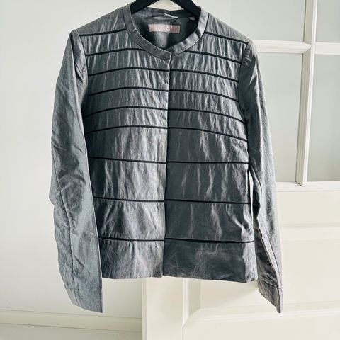 Myydään Minuet Petite -merkkinen pastellisen mintunvihreä jakku kokoa 38. Materiaali 55 % pellavaa, 45 % viskoosia, ja vuori polyesteriä. Lyhyt malli, jossa on olkatoppaukset, 3/4-hihat, peplum-tyyppinen helma ja kiinnitys hakasilla. Hyväkuntoinen lukuunottamatta pientä tahraa toisessa olkapäässä.