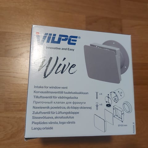 Käyttämätön Vilpe Wive korvausilmaventtiili termostaatilla, valmistajan tuotenumero 380070.