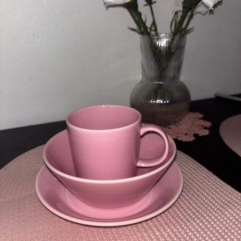 Myydään ruskean väristä Iittalan teemaa. Kahvimukeja 5 kpl+ 2 kpl kahvikuppia+ 10 kpl aluslautasia 14cm kupille+ 4 lautasta 17cm.