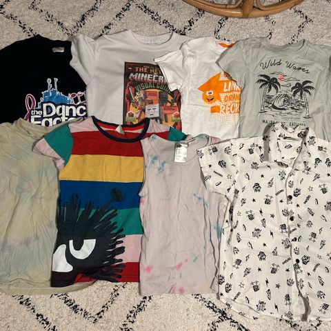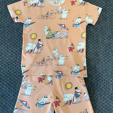 Hyväkuntoinen kesäsetti, harmaat shortsit kokoa 122, muumishortsit (uudet, vain pesty) ja t-paita kokoa 128. Puhtaat, ehjät.