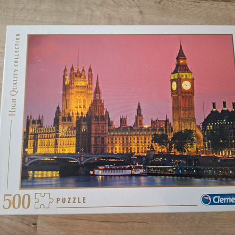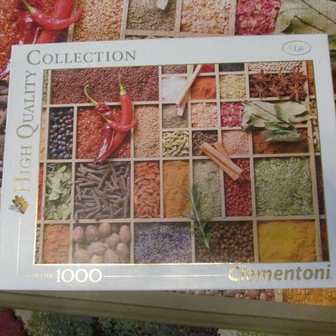Hyväkuntoinen palapeli, purettuna omassa laatikossaan.