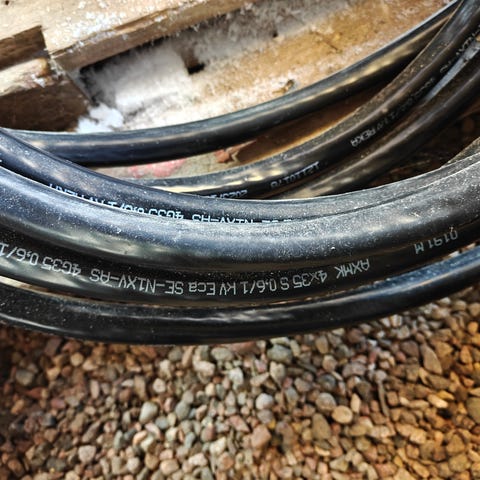 Kelalla oleva 2x90m alumiinivoimakaapelia. Täysin uusi ja käyttämätön Myydään pois ylimääräisenä. Kela kuuluu hintaan.Kuljetus onnistuu PK seudulle, mutta nouto paras. Huomioi, että kela on iso ja painava. Halkaisija 2m