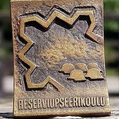 Sodanaikainen kullanvärinen keräys-/talkoomerkki vuodelta 1940. Halkaisija: 26