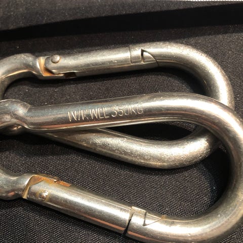 Laadukas karbidihaka / turvahaka. Maksimi kuormitus 350 kg. Pituus 100 mm. Kaupan päälle pieni 50 mm turvahaka ja kaksi 80 mm turvahakaa. Hinta 10 euroa.