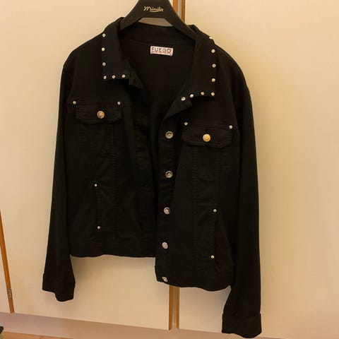 Nyt olisi kaunis karvainen musta/harmaa takki myynnissä.