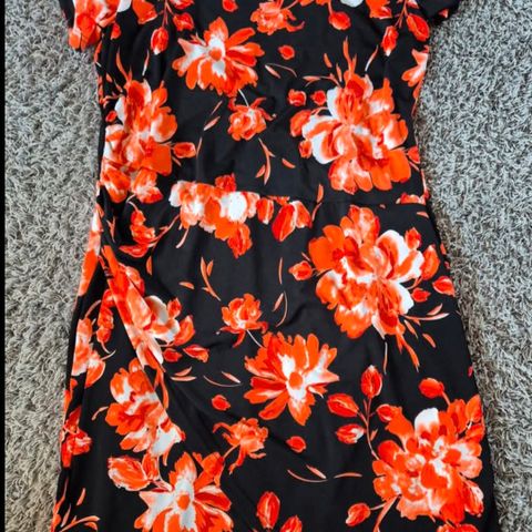Sileää, kevyttä trikoomaista kangasta. Koko XL. Mekon pituus n. 117 cm olasta helmaan.