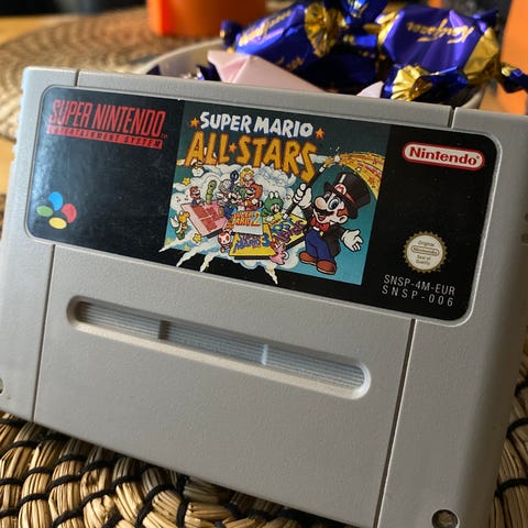 Myydään, testattu, toimiva, hyvä kuntoinen super mario all stars super nintendolle.