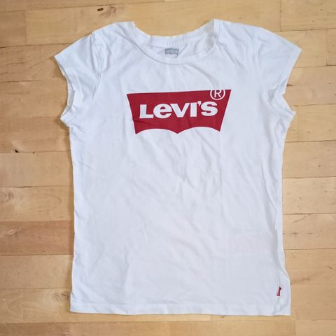 Myydään hyväkuntoinen, sininen Levi’s T-paita. Kokomerkinnän mukaan 16A, 176 cm, mutta vastaa mielestäni paremmin pienempää kokoa, arviolta n. 158.