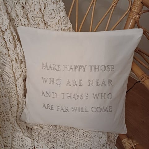 Myydään 8kpl koristetyynynpäällisiä. Yksi purkautunut reunasta.