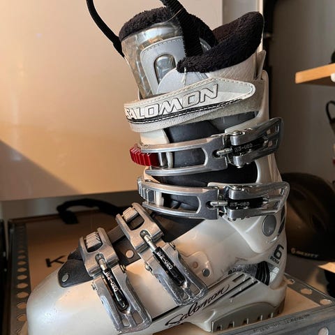 Myydään Salomon laskettelumonot koko 23cm. Väri punainen, hyväkuntoiset.