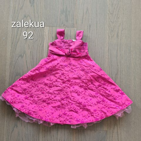 - Vaaleanpunainen juhlamekkoa pitkillä hihoilla. Tyllissä muutamia langanjuoksuja ja pieni reikä (kuva). Eivät erotu käytössä.