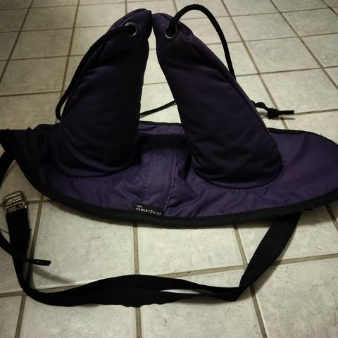 Pinkki hevoskoon kerran käytetty uutta vastaava korvahuppu, kuminauha toimii niin kuin pitääkin.