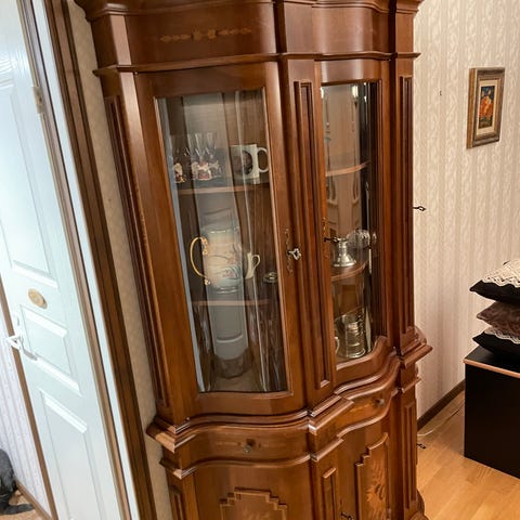 Uuden veroinen pähkinäpuinen Mozart vitriini.