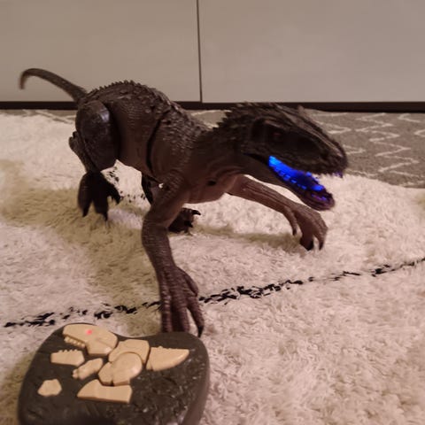 Villit raptorit ovat dinofanien suosikkeja. Liikuta hurjaa Velociraptoria ohjaimella eteen- ja taaksepäin ja laita se karjumaan. Liikkuu myös automaattitoiminnolla ilman ohjaamista. Valoefektejä.