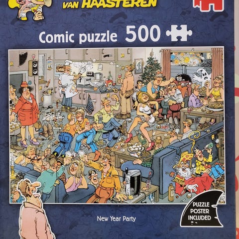 Jan van Haasteren palapeli, 1000 palaa. Ostettu uutena ja kerran kasattu. Kaikki palat tallessa ja palat pussitettu.