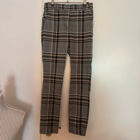 Skinnyt ruutuhousut, värityksenä beige/musta/punainen, koko M