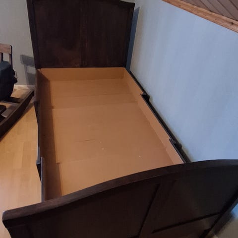 Entisöity hyväkuntoinen antiikkisänky. Patjaleveys 97 x 100-185cm. Runko, ei patjaa.