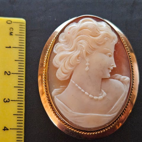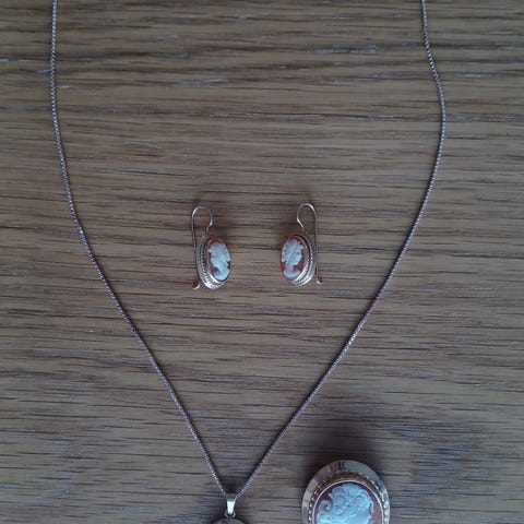 Myydään aidot vintage Camee korut, iso ja pieni. Kultaa molemmat.