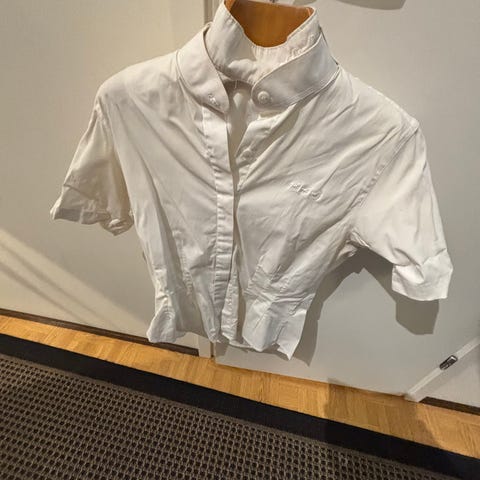 Valkoinen kisapaita koko L. Ratsastushousut koko 40. Vähän käytetyt. Housun lahkeissa muutamia tahroja. Myydään mielellään settinä.