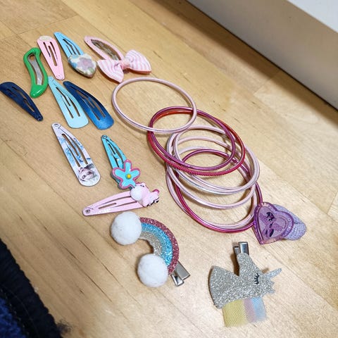 Kuvannäköinen käytössä ollut lasten käsikoru, nauha jossa erilaisia helmiä, hyväkuntoinen. Nouto tai posti. En tee toridiiliä.