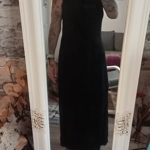 PTA ihana mekko, yläosa resori, saa sitoa niskan taakse, lähes käyttämätön, pituus noin 68 cm, koko M, silitys jää ostajalle.