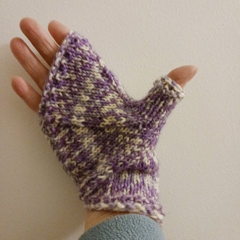 Violetit käsinneulotut rannekkeet / kämmekkäät / ranteen lämmittimet, pituus 18 cm.