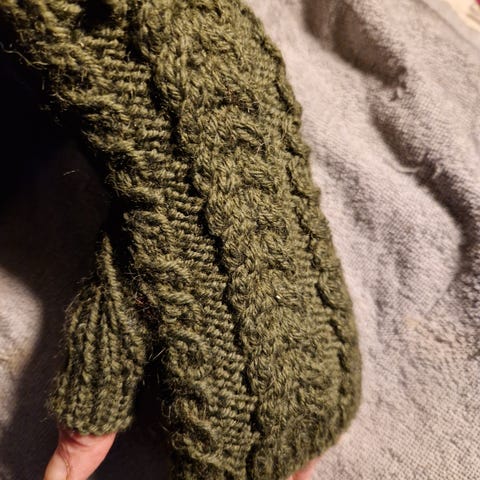 7veljes langasta palmikko neuleella neulotut kämmekkäät. Myös mustana saatavana. Sama malli kummassakin värissä