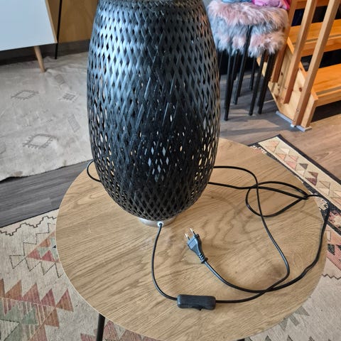 Musta pöytävalaisin taipuvalla varrella. Korkeus noin 45cm.