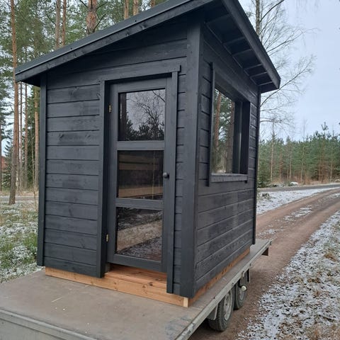 Uusi pihasauna valmiiksi koottuna. Mukaan tulee kiuas, piippu ja vesisäiliö. Täysin löylyvalmis paketti. Hinta 7600€ sis.alv25,5% Sopii hienosti esim. isäpäivälahjaksi!