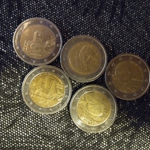 2 euron kolikoita monet hyvässä kunnossa jotkut vähän huonossa kunnossa.