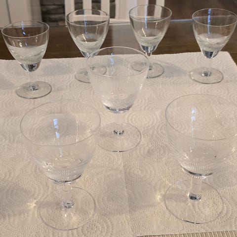 Viisi kuvien mukaista vanhaa lasia, mitat n.100x65mm. Nämä ovat ilman viivoja. Ehjät ja hyväkuntoiset, nouda ja tarkista kunto samalla.