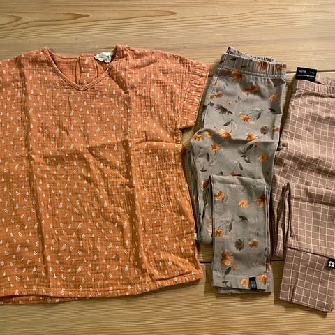 Hyväkuntoisia, puhtaita ja puuvillaisia vaatteita koossa 122/128.