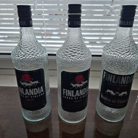 Myydään kaksi kappaletta Tapio Wirkkalan muotoilemaa Finlandia-pulloa yhteishintaan.