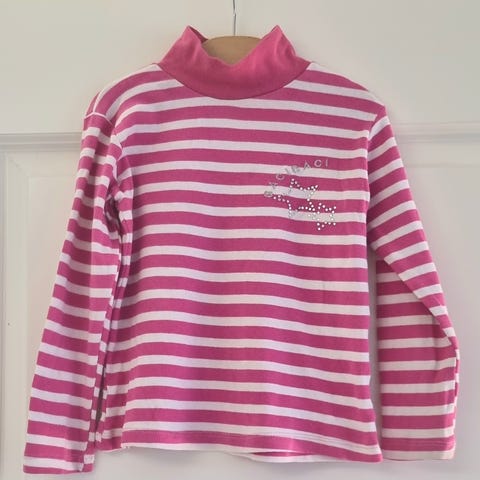 Pinkki-harmaa raidallinen pusero koko 122cm