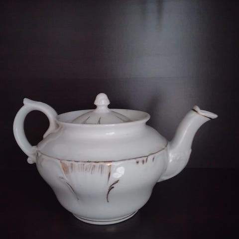 Kuznetcovin tehtaalla 1880-1917 välillä valmistunut suurikokoinen 1l tilavuuden teekannu. Pohjassa on halki, joka ei kuitenkaan vaikuta käyttötarkoitukseen, ei vuotta. Käyttöjalkia on, mutta iän huomioiden,hyvässä kunnossa. Postikulut ostajalle