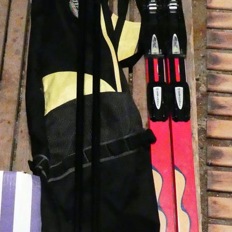 Ns. Kärkiside ja sukset. Siisti kunto jääneet ylimääräisiksi. Karhu, 210cm.
