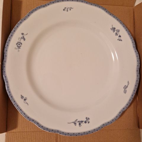 Myydään Apilanlehti lautaset. Fyrklövern Classic. Ruokalautaset 2 kpl, halkaisija 27cm sekä leipälautaset 2kpl, halkaisija 21cm. Hienot perhoskuviot sekä kullatut reunat.