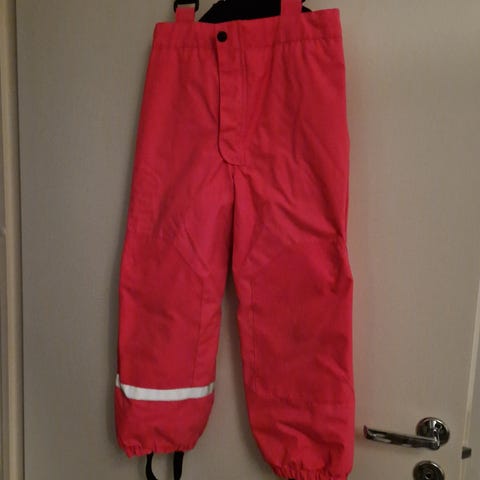 Henkselilliset toppahousut. Hiukan kulumaa polvissa, mutta ei rikki.